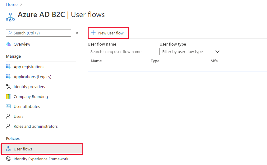 Under ‘User flows’, select the flow you want to configure, and go to ‘Identity Providers’. Here you can customize the identity providers available for users.